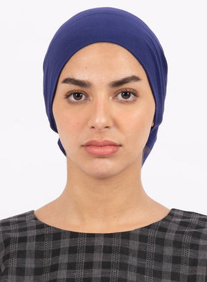 The headband covers all sides. It is characterized by a soft and flexible stretch cotton material that is light on the head. It can be used as a lower piece under the veil or as a prayer sheet.