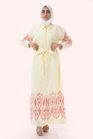 Experience the perfect blend of elegance and comfort with our linen abaya. Designed with the modern modest woman in mind, this dress features wide, long sleeves for ultimate comfort and coverage. The hidden side pockets add a practical touch, while the flowing A-line silhouette and side slit create a flattering and feminine look.